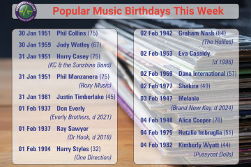 The weeks are flying by! It’s time to look at our pop music birthday file for the coming week.