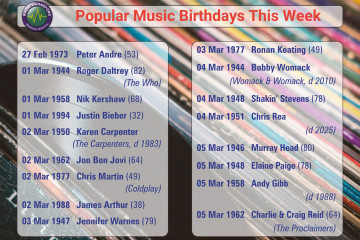 It’s time to open the latest popular music birthday file for the week ahead.