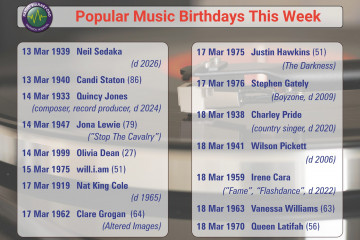 As we approach the weekend, here are the musical birthdays for the coming week.