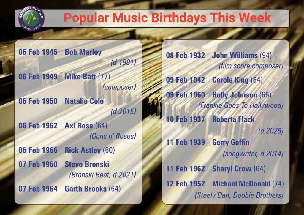 We know it’s been miserable and wet of late, but let’s hope it doesn’t actually rain until September, especially as song writing legend Carole King is going to be 84 this week! Also in our new birthday file, Rick Astley is 60 today, while ET and Jurassic Park composer John Williams is 94 this weekend, Sheryl Crow will be 64 on Tuesday and country star Garth Brooks is 62 tomorrow.